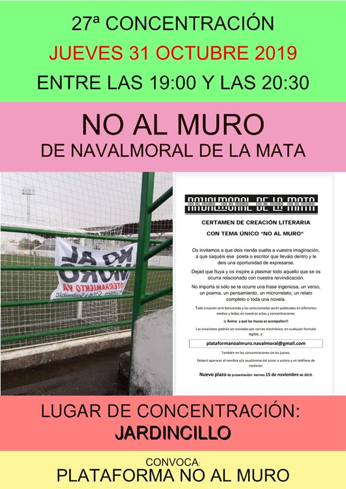La Plataforma NO AL MURO regresa al Jardincillo en la vigésimo séptima concentración, que tendrá lugar esta tarde.